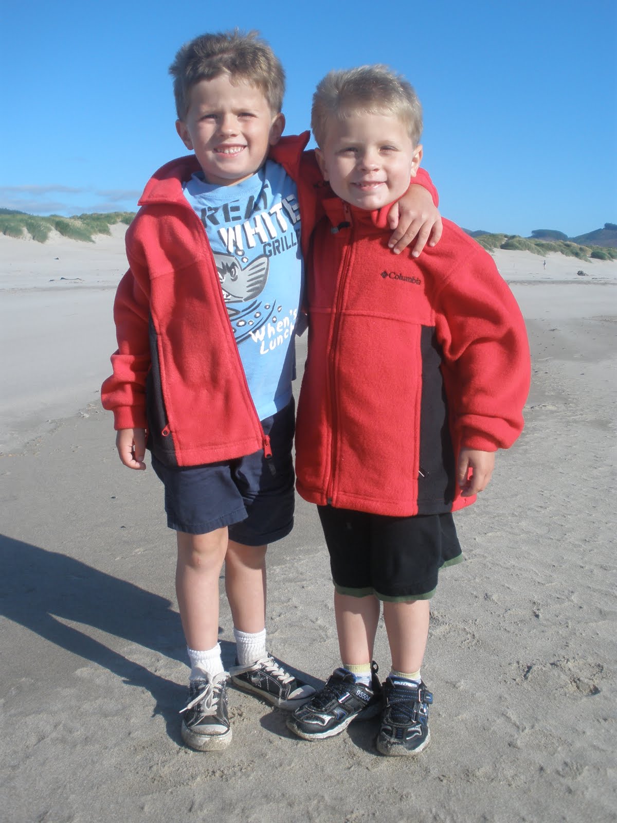 After a total time of 12 hours, including all stops along the way, we arrived at Nehalem Bay State Park around 5:30 p.m. Gary and I agreed that it would be best if I took the kids to the beach right away so he could get our camp set up without delay...and so after a quick pit stop at the bathrooms, we headed to the beach, just a short walk away from our campsite.
